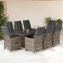 Mesita y sillas jardín 9 piezas y cojines ratán sintético gris