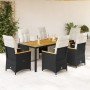 Mesita y sillas jardín 3 pzas y cojines ratán sintético negro