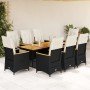 Mesita y sillas jardín 7 piezas y cojines ratán sintético gris