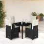 Mesita y sillas jardín 3 pzas y cojines ratán sintético negro