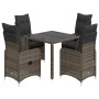 Mesita y sillas jardín 7 piezas y cojines ratán sintético gris