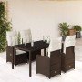Set de mesa y sillas jardín 7 pzas con cojines ratán PE marrón