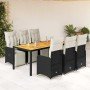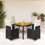 Mesita y sillas jardín 5 pzas y cojines ratán sintético negro