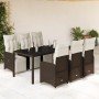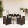 Mesita y sillas jardín 3 pzas y cojines ratán sintético marrón
