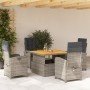 Set comedor de jardín 5 piezas con cojines ratán sintético gris