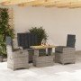 Juego de comedor de jardín 4 piezas con cojines ratán PE gris