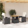 Juego comedor jardín 4 piezas con cojines ratán sintético negro