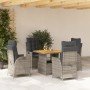 Set comedor de jardín 5 piezas con cojines ratán sintético gris