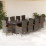 Set de comedor de jardín 11 pzas y cojines ratán sintético gris