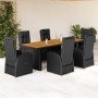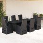 Set de comedor de jardín 9 pzas y cojines ratán sintético negro