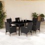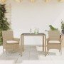 Set comedor jardín 3 pzas cojines ratán sintético vidrio negro