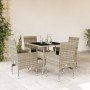 Este juego de comedor de jardín es una gran elección para comer al aire libre o simplemente para relajarte en el jardín, el patio o la terraza. Material duradero: El ratán PE, también conocido como ratán sintético, es un material sintético resistente y de bajo mantenimiento que se parece al ratán natural. Es ligero, fácil de limpiar y se usa comúnmente para muebles de exterior debido a su durabilidad y propiedades resistentes a la intemperie.Experiencia de asiento cómoda: Este juego de muebles de exterior, completo con cojines acolchados gruesos, ofrece una experiencia de asiento cómoda.Funda desenfundable y lavable: Estos cojines de asiento cuentan con fundas desenfundables para facilitar el lavado y mantenimiento.Superficie de vidrio: La superficie de la mesa de exterior es de vidrio templado resistente y duradero, por lo que es fácil de limpiar con un paño húmedo y añade un toque de elegancia a tu espacio exterior. Información útil:Para asegurarte de que tus muebles de exterior se mantengan hermosos, recomendamos protegerlos con una funda impermeable.