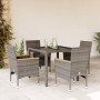 Set comedor jardín 3 pzas y cojines ratán sintético vidrio gris