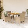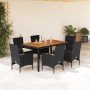 Set de comedor jardín 7 pzas con cojines ratán PE acacia beige