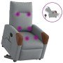¡Siéntate y descansa en este comodísimo sillón reclinable de masaje elevable! Función de elevación eléctrica: Este sillón reclinable para las personas mayores está equipado con un motor eléctrico para la función de elevación. Gracias a la función de elevación que empuja el sillón hacia arriba por completo, te puedes levantar fácilmente, sin tensiones en la espalda y las rodillas, con sólo pulsar el botón.Función de reclinado manual: Este sillón reclinable tiene un mango en el lado derecho. Con sólo tirar de él, puedes ajustar manualmente el reposapiés y el respaldo a cualquier posición que te resulte cómoda. Esta función permite una inclinación máxima de 135 grados. Además, el respaldo vuelve rápidamente a su posición original con solo tirar del mango.Función de vibración: Los 6 puntos de masaje te harán disfrutar de un masaje mejor enfocado. Además, el mando incluido te permite elegir diferentes programas de masaje. La función de masaje funciona a través del conector USB que requiere una fuente de alimentación USB de 5 V certificada (no incluida).Cómodo asiento: El mullido asiento , el respaldo y los amplios reposabrazos cubiertos de tela proporcionan una sensación cómoda y acogedora, para que estés de maravilla mientras estás sentado. La tela posee un aspecto sencillo y limpio, y es transpirable y duradera.Práctico bolsillo lateral: Este sillón tiene un bolsillo lateral para que guardes tus cosas al alcance de la mano.Estructura maciza y estable: La estructura, hecha de madera y metal, proporciona una estructura y una estabilidad fuertes. Este sillón reclinables es cómodo y duradero.