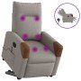 ¡Siéntate y déjate llevar en este comodísimo sillón reclinable y elevable eléctrico! Función de elevación eléctrica: Este sillón reclinable para las personas mayores está equipado con un motor eléctrico para la función de elevación. Gracias a la función de elevación que empuja el sillón hacia arriba por completo, te puedes levantar fácilmente, sin tensiones en la espalda y las rodillas, con sólo pulsar el botón.Función reclinable eléctrica: Este sillón reclinable también está equipado con un motor eléctrico que ayuda a ajustar el reposapiés y el respaldo de forma automática a cualquier posición que desees con solo presionar el botón en el lateral del sillón. Esta característica permite una inclinación máxima de 135 grados. Además, el respaldo vuelve automáticamente al lugar original con solo presionar el botón.Cómodo asiento: El mullido asiento, el respaldo y los amplios reposabrazos cubiertos de tela proporcionan una sensación cómoda y acogedora, para que estés de maravilla mientras estás sentado. La tela posee un aspecto sencillo y limpio, y es transpirable y duradera.Práctico bolsillo lateral: Este sillón tiene un bolsillo lateral para que guardes tus cosas al alcance de la mano.Estructura maciza y estable: La estructura, hecha de madera y metal, proporciona una estructura y una estabilidad fuertes. Este sillón reclinables es cómodo y duradero.