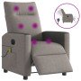 ¡Siéntate y descansa en este comodísimo sillón reclinable eléctrico! Función de reclinación eléctrica: Este sillón reclinable está equipado con un motor eléctrico para ajustar el reposapiés y el respaldo de forma automática a cualquier posición que desees con sólo pulsar el botón en el lateral del sillón. Esta característica permite una inclinación máxima de 135 grados. Además, el respaldo vuelve automáticamente a la posición original con sólo pulsar el botón.Cómodo asiento: El mullido asiento, el respaldo y los amplios reposabrazos cubiertos de tela proporcionan una sensación cómoda y acogedora, para que estés de maravilla mientras estás sentado. La tela posee un aspecto sencillo y limpio, y es transpirable y duradera.Práctico bolsillo lateral: Este sillón tiene un bolsillo lateral para que guardes tus cosas al alcance de la mano.Estructura maciza y estable: La estructura, hecha de madera y metal, proporciona una estructura y una estabilidad fuertes. Este sillón reclinables es cómodo y duradero.
