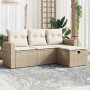 Juego de sofás jardín con cojines 4 pzas ratán sintético beige