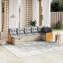 Set sofás de jardín 7 piezas y cojines ratán sintético beige