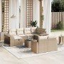 Juego de sofás jardín con cojines beige 10 pzas ratán sintético