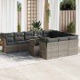 Set de sofás de jardín 11 pzas y cojines ratán sintético negro