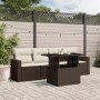 Set comedor de jardín 5 piezas y cojines ratán sintético marrón