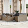 Set de sofás de jardín con cojines 9 pzas ratán sintético gris