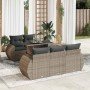 Set de sofás de jardín 6 piezas y cojines ratán sintético negro