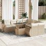 Set de sofás de jardín 9 pzas y cojines ratán sintético marrón