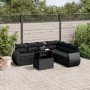 Set de sofás de jardín 7 pzas con cojines ratán sintético negro