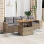 Este conjunto de sofás de jardín es el complemento perfecto para el jardín, terraza o patio, ya que proporciona un espacio confortable y acogedor para charlar con familiares y amigos o simplemente relajarte y disfrutar del aire libre. Material duradero: El ratán sintético, también conocido como ratán sintético, es un material sintético resistente y de bajo mantenimiento que se parece al ratán natural. Es ligero, fácil de limpiar y se usa comúnmente para muebles de exterior debido a su durabilidad y propiedades resistentes a la intemperie.Función de almacenamiento con bolsa resistente al agua: El mueble de jardín cuenta con espacio de almacenamiento debajo del asiento, completo con una bolsa resistente al agua para guardar cojines, juguetes y otros artículos. La bolsa interior se puede sujetar de forma segura a los muebles de exterior con cierres de gancho y bucle para mayor estabilidad.Tablero ajustable: El tablero de la mesa se puede levantar para que la mesa sea más alta, lo que transforma la mesa al aire libre de una mesa de café a una mesa de comedor. Es perfecto para invitar a invitados o comer al aire libre.Funda desenfundable y lavable: Estos cojines de asiento cuentan con fundas desenfundables para facilitar el lavado y mantenimiento.Diseño modular: Este conjunto de muebles de exterior tiene un diseño modular, por lo que es completamente flexible y fácil de mover, para que puedas crear una disposición de muebles de exterior personalizada. Información útil:Para asegurarte de que tus muebles de exterior se mantengan hermosos, recomendamos protegerlos con una funda impermeable.