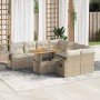 Set de sofás de jardín con cojines 9 pzas ratán sintético beige