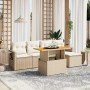 Juego de sofás jardín con cojines 6 pzas ratán sintético beige