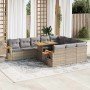 Set sofás jardín y cojines 11 pzas ratán sintético acacia beige