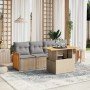 Set sofás jardín y cojines 5 pzas ratán sintético acacia beige