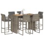 Set bar jardín con cojines 3 pzas ratán sintético acacia gris
