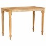 Hecha de madera maciza de mango, nuestra mesa auxiliar de madera irradia un encanto rústico y será un aporte distintivo para el interior de tu hogar. Se puede usar como mesa de centro, soporte para el teléfono y mesita de noche, etc. Esta mesa auxiliar está hecha de madera maciza de mango con un acabado natural. La madera de mango es una madera dura, densa y robusta, que tiene hermosas vetas y contornos naturales en su superficie. Las fuertes patas redondas contribuyen a la construcción robusta. La mesita de sofá es fácil de montar. Nota importante: Los colores pueden variar de una pieza a otra, lo que hace que cada mesa sea única. La entrega es aleatoria.