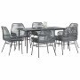 Juego comedor jardín 5 pzas cojines ratán sintético vidrio gris