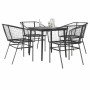 Juego de comedor jardín 5 piezas ratán sintético vidrio negro