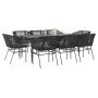 Set de comedor de jardín 7 piezas cojines ratán sintético negro