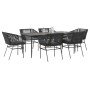 Juego comedor jardín 3 pzas cojines ratán sintético vidrio gris