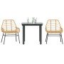 Este juego de comedor de jardín es una gran elección para comer al aire libre o simplemente para relajarte en el jardín, el patio o la terraza. Material duradero: El ratán sintético, también conocido como ratán sintético, es un material sintético resistente y de bajo mantenimiento que se parece al ratán natural. Es ligero, fácil de limpiar y se usa comúnmente para muebles de exterior debido a su durabilidad y propiedades resistentes a la intemperie.Estructura robusta y estable: La estructura de acero con recubrimiento en polvo es fuerte, estable, duradero y resistente a la corrosión y a las inclemencias del tiempo, lo que garantiza un rendimiento duradero.Respaldo y reposabrazos prácticos: Esta silla de jardín cuenta con un respaldo y dos reposabrazos que ofrecen un soporte y comodidad óptimos para los usuarios.Funda desenfundable y lavable: Estos cojines de asiento cuentan con fundas desenfundables para facilitar el lavado y mantenimiento.Superficie de vidrio: La superficie de la mesa de exterior es de vidrio templado resistente y duradero, por lo que es fácil de limpiar con un paño húmedo y añade un toque de elegancia a tu espacio exterior. Información útil:Para asegurarte de que tus muebles de exterior se mantengan hermosos, recomendamos protegerlos con una funda impermeable.