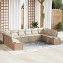 Conjunto de sofás de jardín con cojín 11 pcs Beige Poliratán
