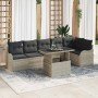 Conjunto de sofá de jardín 7 pcs Beige Rattan de Poliéster