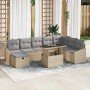 Conjunto de sofá de jardín con cojín 9 pcs Beige Poliratán