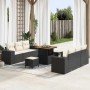 Conjunto de sofá de jardín con cojín 9 pcs Negro Poliratán