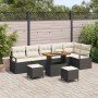 Conjunto de sofá de jardín con cojín 9 pcs Negro Poliratán