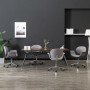 Este juego de 2 sillas de comedor giratorias, con un diseño elegante y moderno, es un complemento perfecto, práctico y moderno para la sala de estar, el dormitorio, el salón o la oficina. Ofrece un lugar confortable para que tu familia pueda cenar en el comedor, así como comer o descansar en la sala de estar. El asiento y el respaldo tienen un diseño ergonómico, están tapizados en cuero sintético suave y acolchados con espuma, por lo que la silla es muy cómoda. Las patas de metal refuerzan su durabilidad y belleza estética. La silla gira 360 grados y cuenta con un mecanismo de altura regulable gracias al sistema de elevación a gas. Estas sillas de comedor también son fáciles de montar. Máximo 110 kg por asiento. Tenga en cuenta el riesgo de fuego abierto y otras fuentes de calor intens