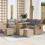 Conjunto de sofás de jardín con cojín 9 pcs Beige y Gris Claro