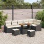 Conjunto de sofás de jardín con cojín 9 pcs Negro Poliratán